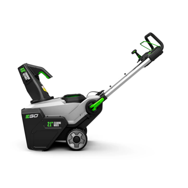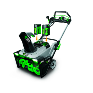 The new EGO POWER+ SNT2114 21″ Cordless Snow Blower delivers the power and performance of gas without the noise, fuss and fumes. Featuring Peak Power™ technology, it combines the power of any two EGO 56V ARC Lithium™ batteries for the power to clear heavy, wet snow with a throwing distance up to 40 ft. Built with a high-efficiency brushless motor and steel auger, the EGO POWER+ Snow Blower handles what the city snow plow leaves behind with ease; cutting through ice and snow 50% faster*. EGO harnesses the power of the industry’s most advanced 56V, 7.5Ah ARC lithium™ batteries to clear 8″ of snow on a 14 car driveway. The EGO POWER+ SNT2114 Cordless Snow Blower has the power to handle tough jobs fast without the noise, fuss and fumes of gas. Includes (2) 7.5Ah batteries and rapid charger.