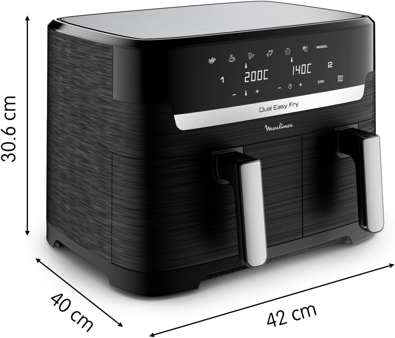 - Contents: Easy Fry Dual air fryer, 2 removable hot air cooking grills, quick start guide, instruction manual, free app
