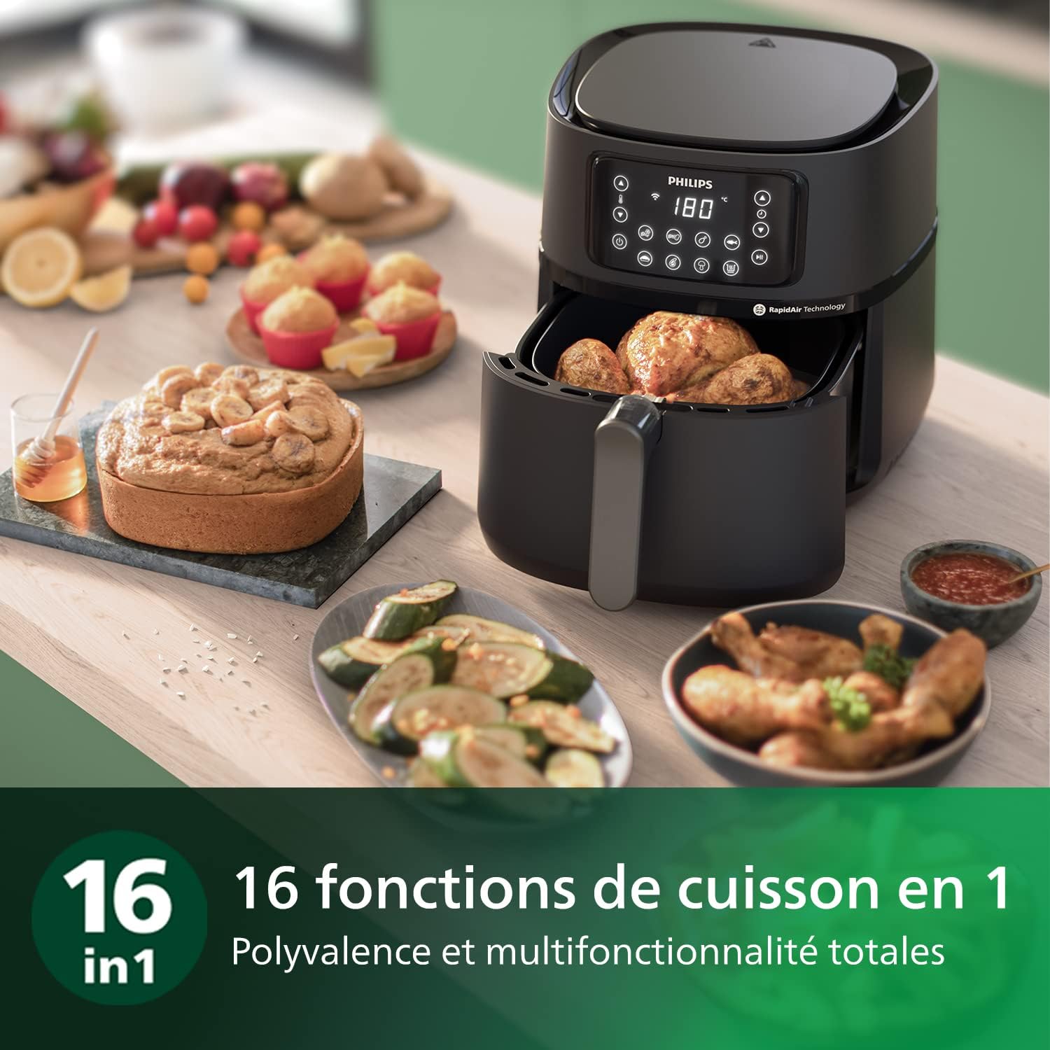 The new Philips Airfryer 5000 Series XXL Connected has 16 different cooking functions: fry, bake, grill, roast, dehydrate, toast, defrost, reheat, ferment and many more.