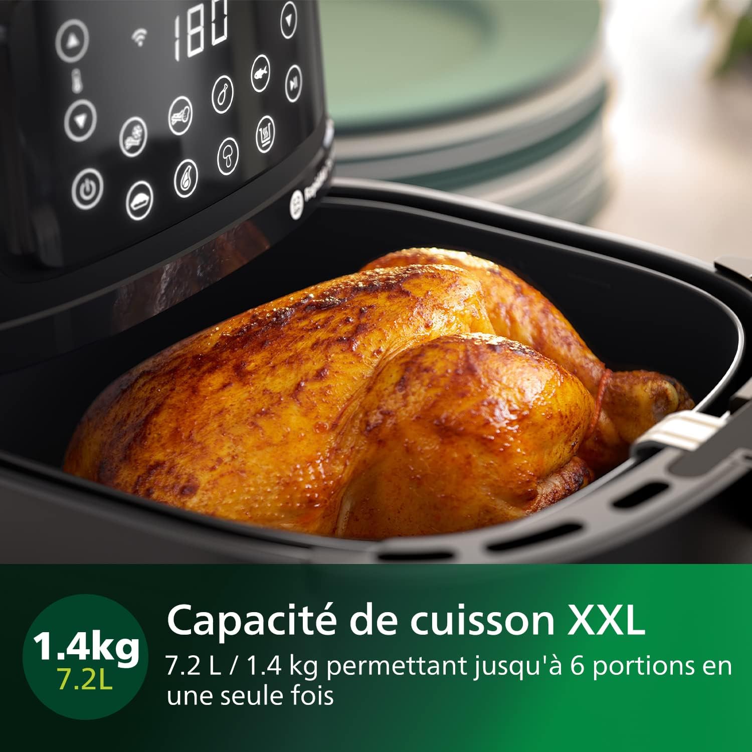 The Philips Airfryer 5000 Series XXL Connected is designed with your family in mind. The 1.4Kg capacity basket, combined with the 7.2L pan, help you cook a variety of meals. Make up to 6 meal portions in one go for your family and friends.